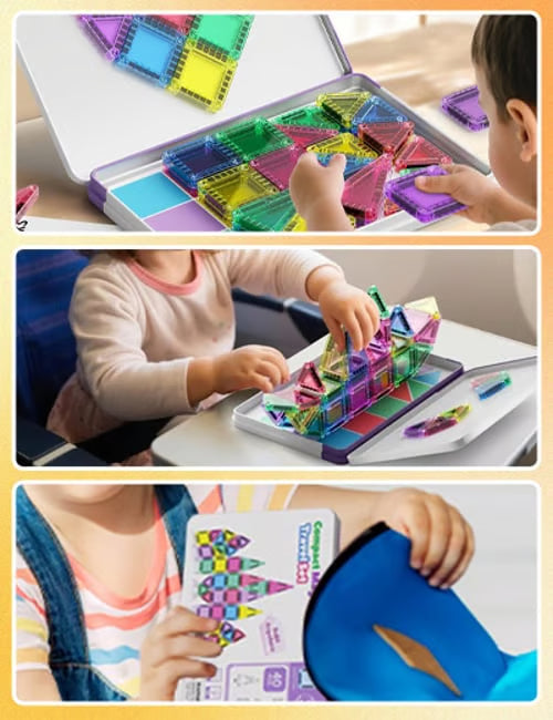 The self-contained, spill-proof metal case(that doubles as a building base) makes this the perfect on-the-go toy. Magnetic pieces won't scatter, ensuring quick setup and 10-second cleanup, transforming stressful moments into calm creativity.