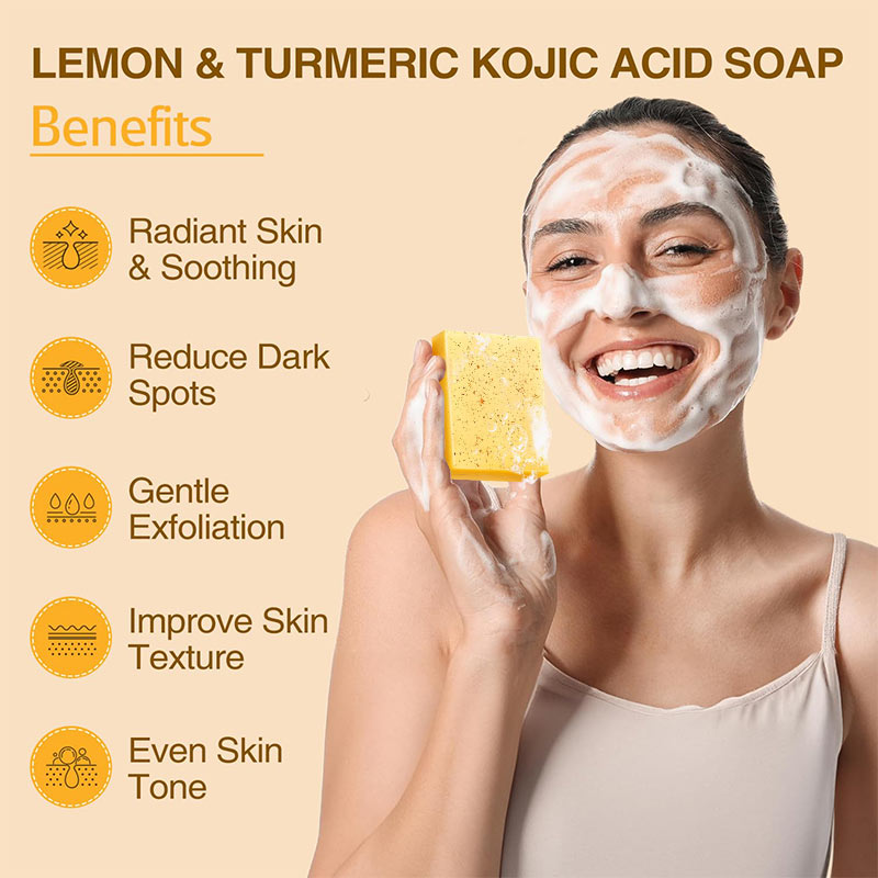 This lemon-turmeric kojic soap pulls double duty as a facial cleanser and body wash, packing brightening, smoothing benefits into a gentle, daily-friendly blend.